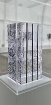Vestigium Pulvis [b/w] / 2012 / Etched acrylic, paint / 2 @ 75x75x40mm